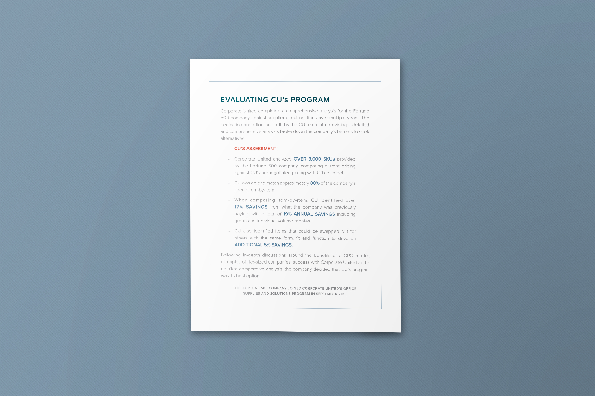 CORPORATE UNITED • OFFICE PRODUCTS CASE STUDY